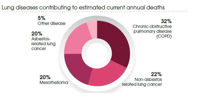 - 12,000 estimated deaths related to lung disease per annum due to past exposure through work